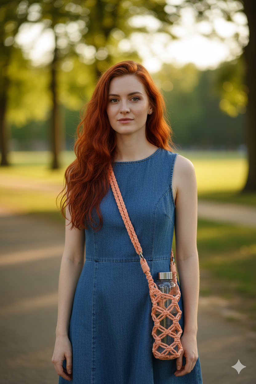 El Portabotellas Vital te permite mantenerte hidratada con comodidad y estilo. Tejido a mano en macramé con algodón 100% reciclado, es ligero, resistente y práctico. Su asa regulable te da libertad total: llévalo al trabajo, al gimnasio, de paseo o incluso al súper, siempre con las manos libres.